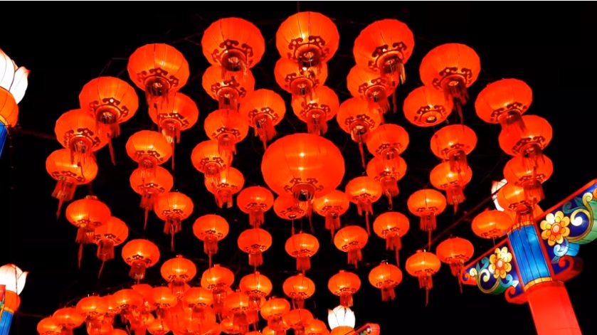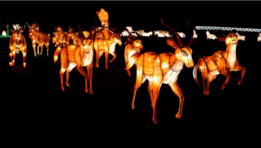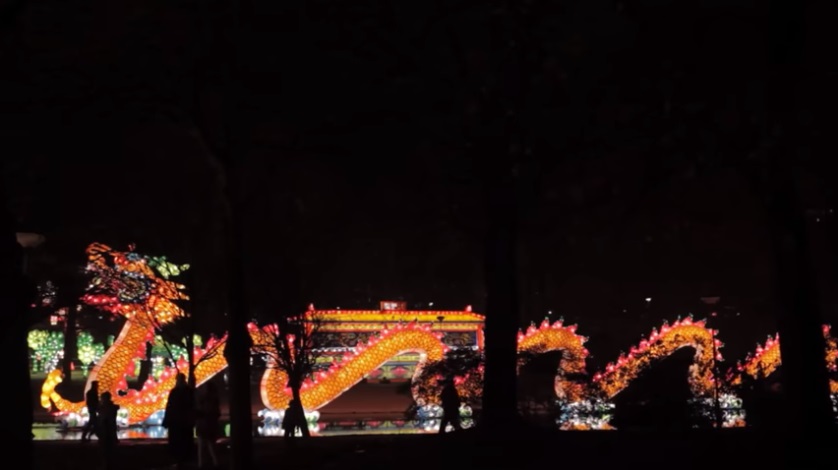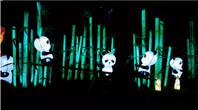 今年的彩灯,有着非常浓厚的中国水墨风格。