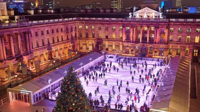 萨默塞特宫的广场上,开辟了一个大型的圣诞滑雪场