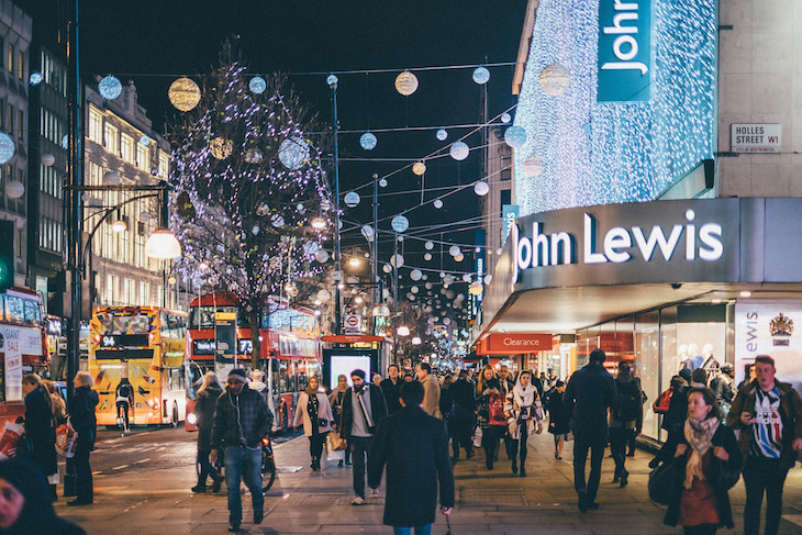 牛津街还是和往年一样, 用彩灯妆点节日的氛围。