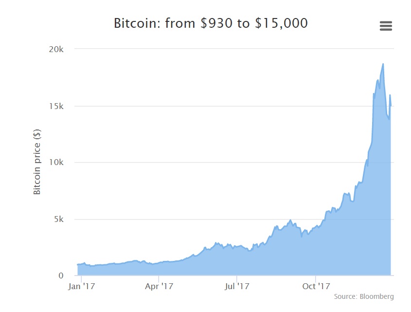 从最初比特币的价格在930美元波动,随后接连暴涨,最高冲破17000美元关口,到2017年12月22日,涨幅高达2000%。
