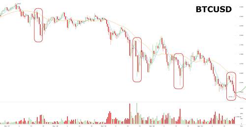 对于近期比特币价格的接连下挫,美国金融博客Zero Hedge注意到,在过去两周时间中,有四天出现美东时间下午8点(北京时间第二天上午9点)左右比特币遭到打压的情况。