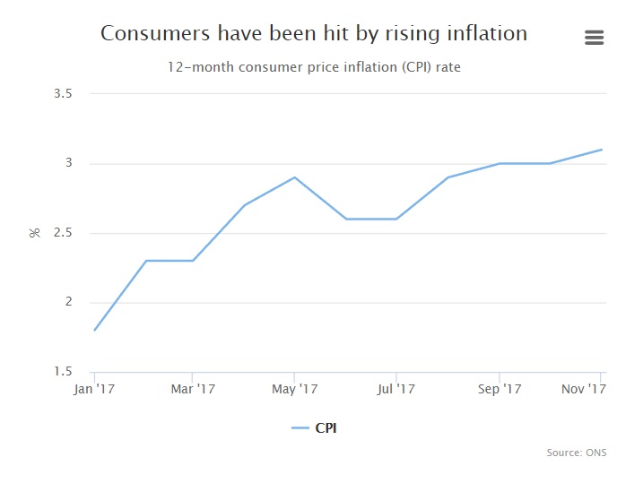 去年11月,以消费者价格指数(CPI)衡量的通货膨胀率达到了3.1%,远高于政府设定的2%的目标。而距离上一次的高膨胀率还是在2012年。