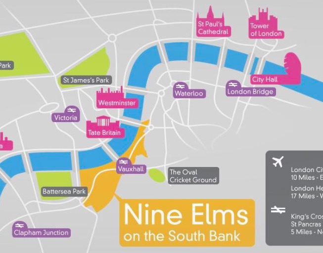 从上面地图可以看到,九榆树位于泰晤士河南岸,沿湖景色迷人;步行几步就能到达伦敦眼和大笨钟;又有地铁交通直穿而过,交通便捷。