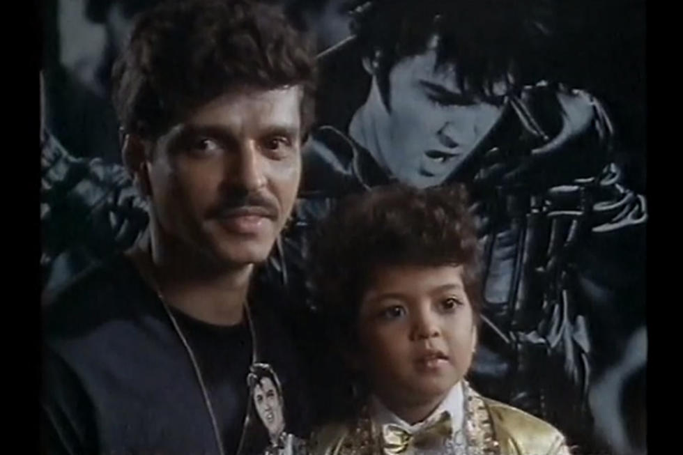 去年年底,火星哥在自己的社交媒体上,晒出了自己小时候模仿猫王的照片
