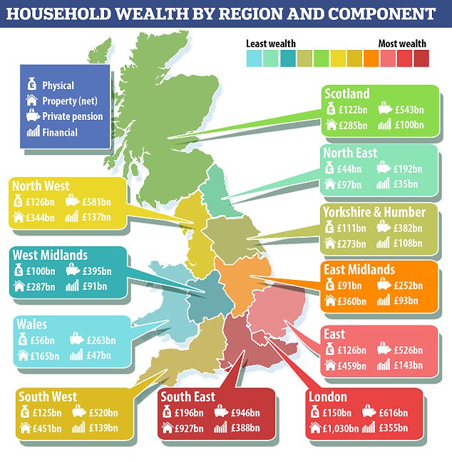 东南英格兰以2.46万亿英镑的总财富值位列全英第一;