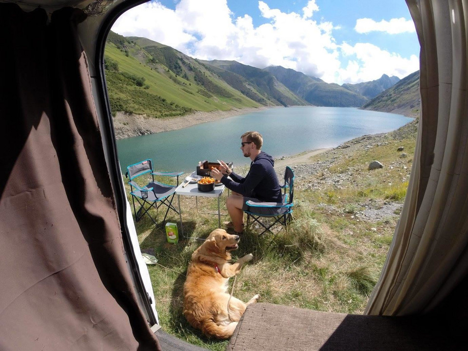 就这样,一只狗,一只猫,一辆面包车,这对小情侣一直在路上…