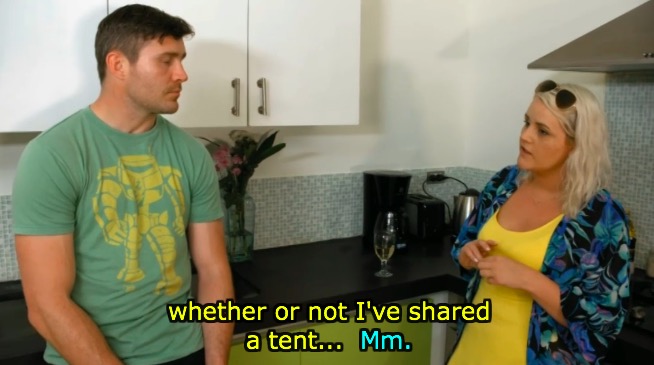 他们传达了女伴对爱人的要求,Tony开门见山地问了,“你们睡了一个帐篷吗?”