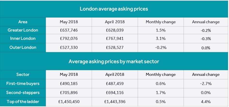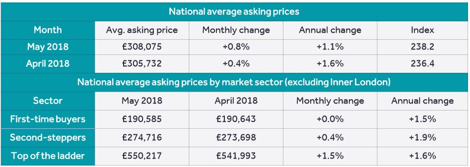 据报告显示,2018年5月新的市场卖家继续抬高要价,全英范围内平均要价对比上月增长0.8%,合£2,343。