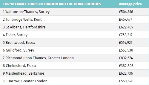 所以,在伦敦及周边地区,哪些地方比较受英国家庭的青睐呢?