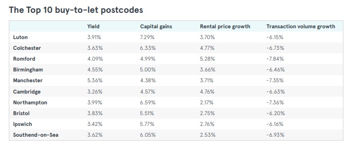 上季度排在第一的Colchester,在这一季度掉到了第二,原因在于房价的增长速度被Luton超越。但从租金回报率来说,却在经历了一个季度的房价增长之后还是保持原状,因为Colchester的平均租金涨幅也提高了。