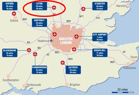 Luton位于伦敦北部的贝德福德郡,是这个郡最大的镇。