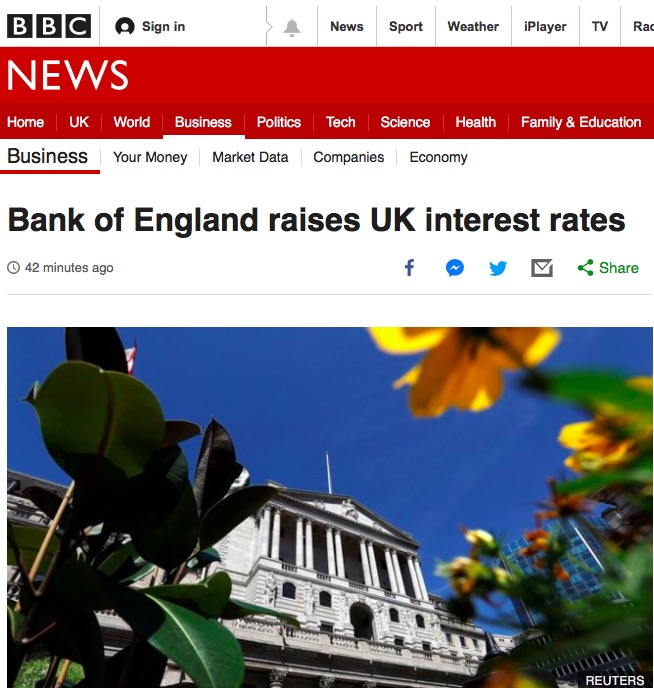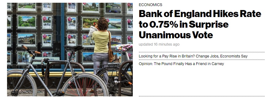 “如果说去年11月首度加息更多的是一种象征意义,旨在表达政府控制通货膨胀率,调控经济发展的决心,那么这次的加息则是向全世界宣布英国的低利率时代已经结束。”