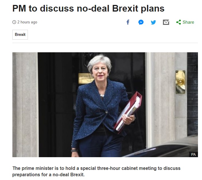 先说下今天最新的情况,据英国BBC报道,英国首相特蕾莎梅正准备召开一次时长3小时的“特殊”内阁会议,以商讨关于无协议脱欧(no-deal Brexit)的各项事宜。