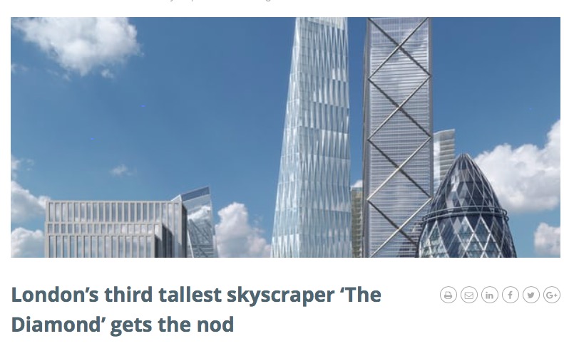 据悉,大厦取名为“The Diamond钻石大厦”,计划为56层,高度为 263.4米,比伦敦金融城地标奶酪刨足足高了38.4米。目前,这高个高度仅仅低于伦敦310米高的碎片大厦,正在规划建设的290米高的The Trellis和278米的22 Bishopsgate,为伦敦第四高建筑!