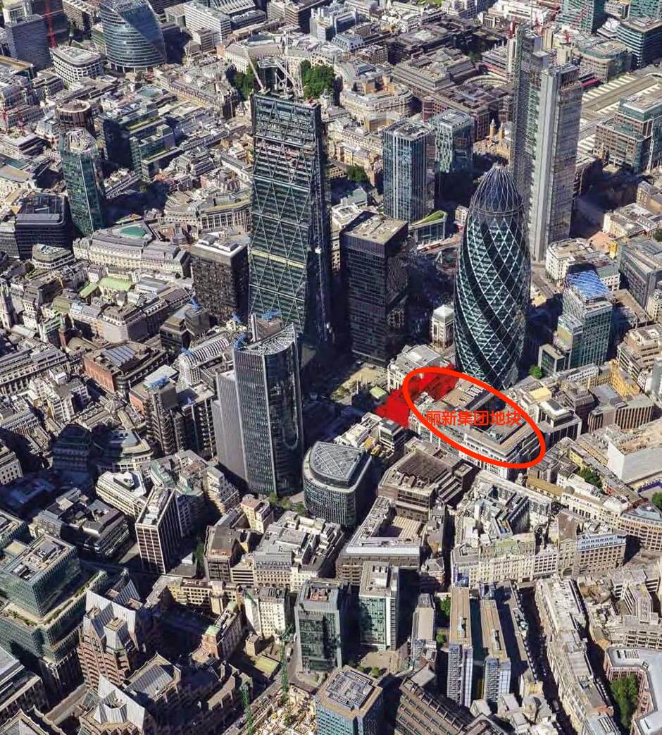 丽新集团早在2014年便开始有目的地收购英国金融城同一地段的三栋大楼: