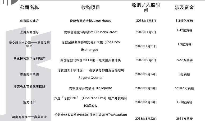 总的来说,仅仅2018年上半年,香港和大陆的投资者在英国出手了如下楼盘。
