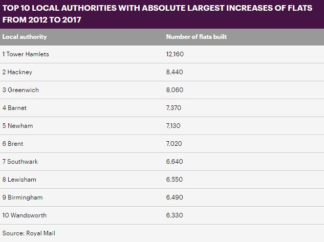 绝对值最高的还是Tower Hamlets,新造了12,160套公寓房。