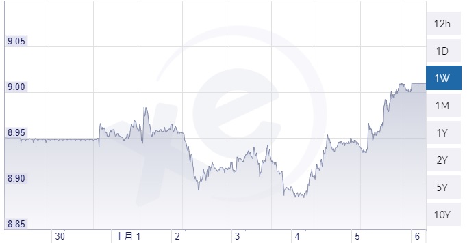 因为连续的政局动荡,英镑在10月初的时候吃了一波跌,不过10月4号之后就出现了反弹,一路上行兑美元1.31,兑人民币也重新突破了9.0。
