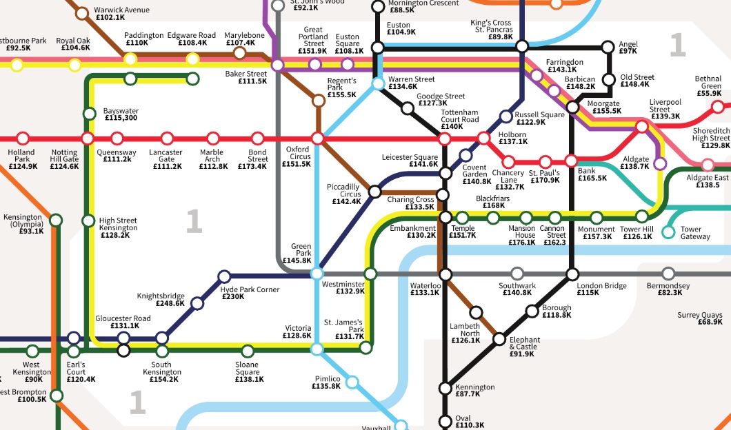 邦德街、Mansion House和圣保罗这三站房价最贵一些,都在90万英镑以上。所以对年薪的要求也达到了17万镑,相当于人民币153万人民币。放在全球不管什么地方都算是高收入人群了。