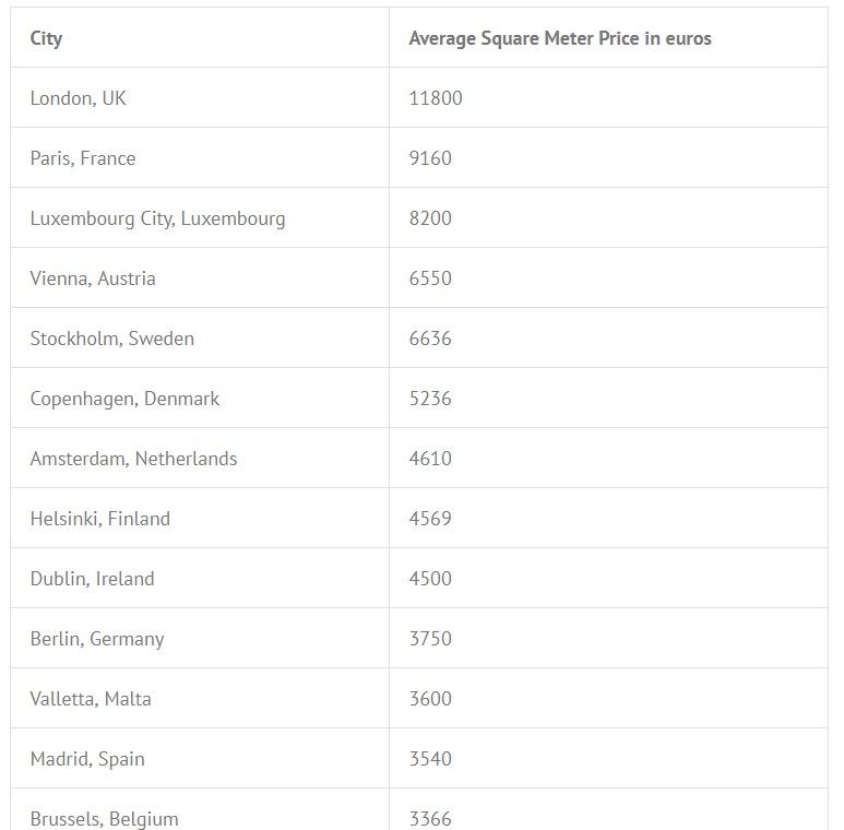 毕竟看看房价,如下图所示:各大城市每平方米的房价(单位欧元)