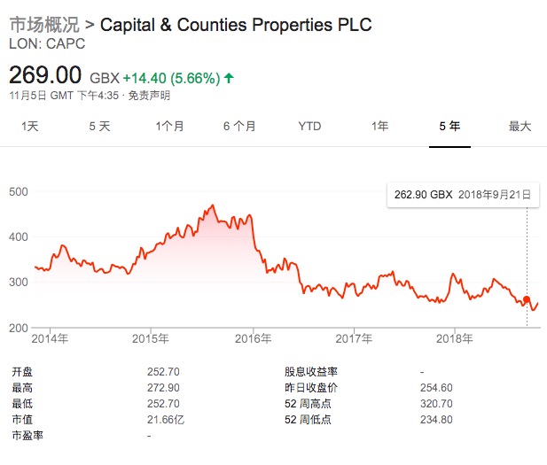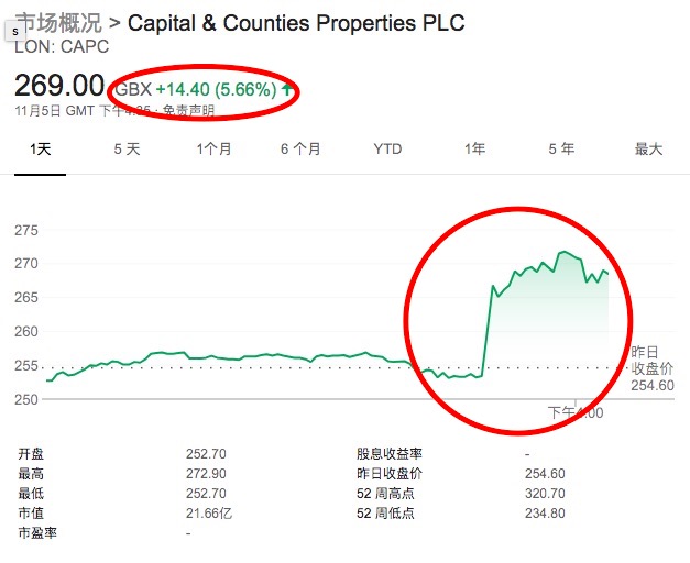 众多的地产公司也纷纷来竞标,这也推动了Capital & Counties地产公司股价的上涨