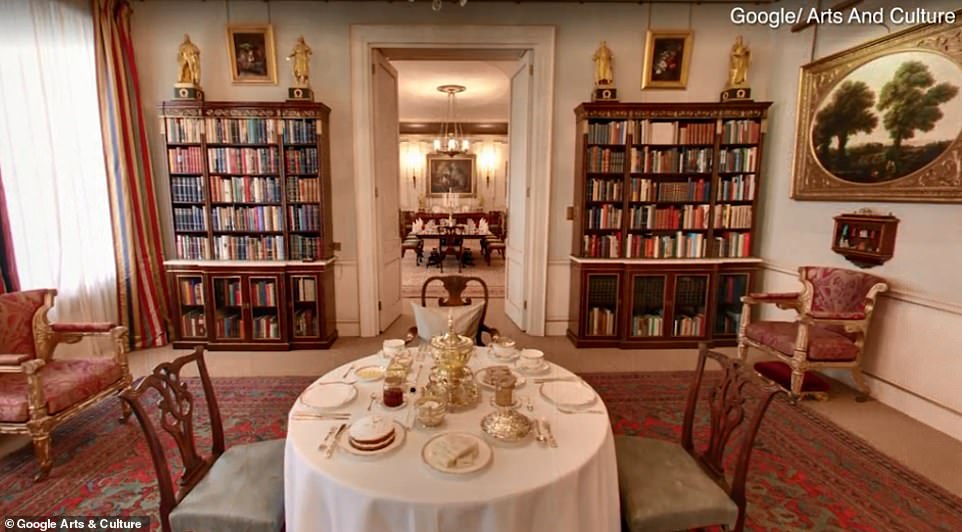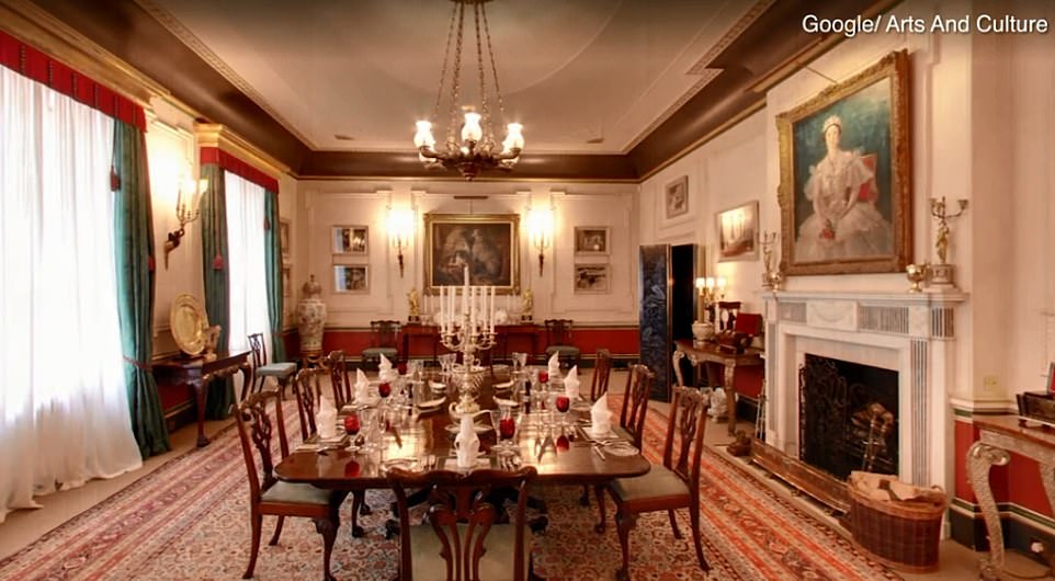 书房连接着餐厅,餐厅可以容纳8人, 太后的肖像挂在壁炉上方,而王子的座位是在桌子正中央,面对着太后的肖像。