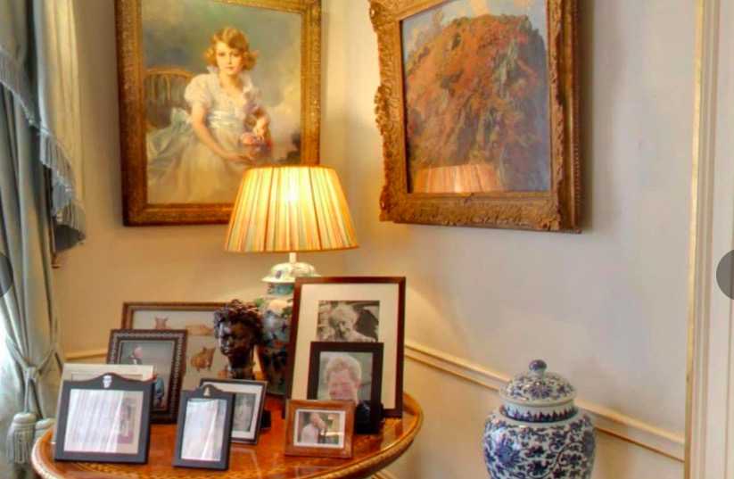 一角的桌子上还摆放着查尔斯王子家人的温馨照片