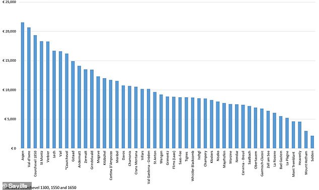 世界第三贵的滑雪胜地为法国的Courchevel 1850,这里每平米的均价为17,196英镑,约合人民币15.5万。