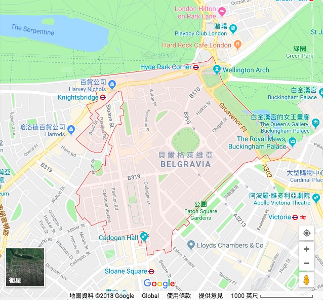 这个区域主要位于Belgravia,白金汉宫之间,属于伦敦老牌富人区City of Westminster。