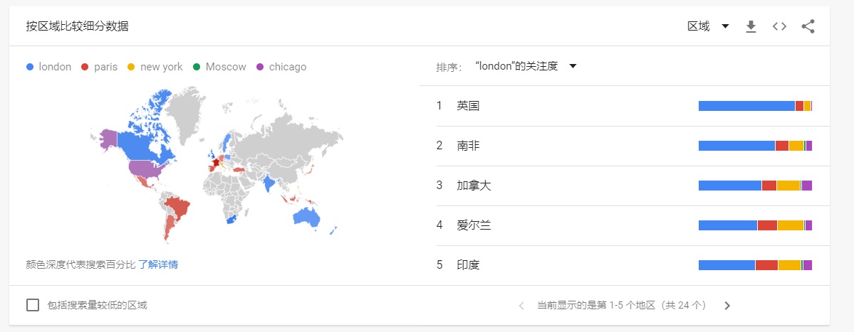 搜索量分布地区则主要集中在英联邦国家。虽然大英帝国早就解体,但是伦敦对于英联邦国家的影响却不会消失。有专设的英联邦国家奖学金机构,旨在鼓励英联邦国家的学生来英国接受教育。