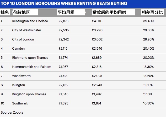 这些地方区域好,所以房价高,而租金又被伦敦整体租金水平往下拉,导致这些地方的租金回报通常只有2-3%。 同时房价高,贷款金额比较高,因此导致贷款后的还款月供,要比租房的租金要高不少。