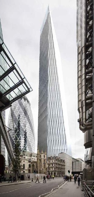 56层的100 Leadenhall Street,高度为263.4米,目前已经经过批准,尚未开工。