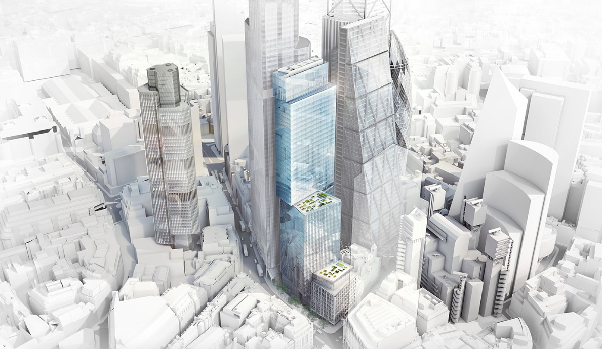36层的1 Leadenhall Street,高度为182.7米,目前已经经过批准,尚未开工。