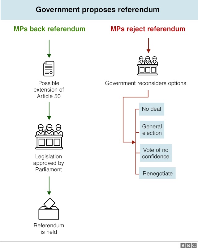 第二次公投程序需要由政府发起,也就是说下议院的议员们不能因为看到特蕾莎梅的协议没有通过而自发发起公投程序。