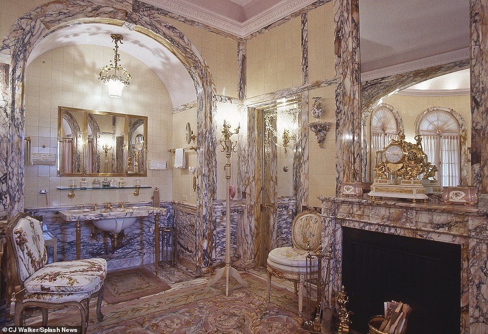 庄园单单浴室就有33个,川普还为浴室花了10万英镑,镀上了金