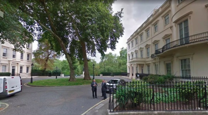 图片里,最左边的是女王家–白金汉宫,然后最靠The Mall大道的这一排房子,依次是查尔斯王子的家–圣詹姆斯宫,英联邦的办公室–Marlborough Office,英国外交大臣官邸,然后再下一栋…就是我们今天的豪宅主角了