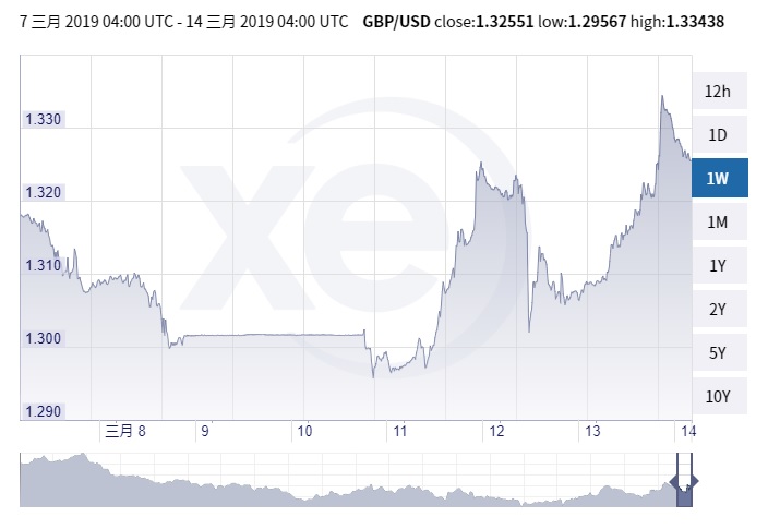 无协议脱欧被议会否决之后,利好兑现。英镑兑美金最高涨至1.33,兑人民币上涨至8.91。