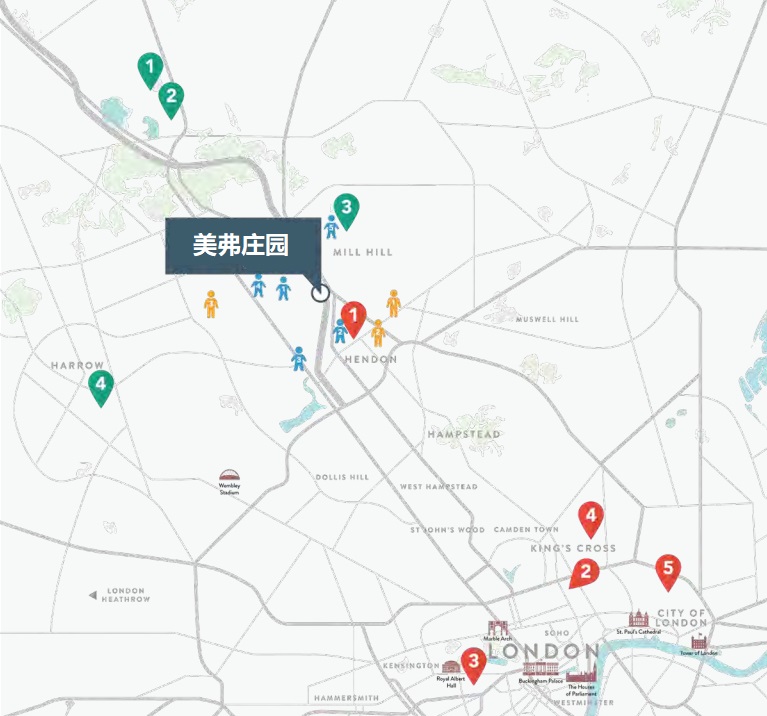- 美弗庄园的交通便利,步行7-8分钟内可达北线(Nothern Line)Colindale地铁站,北线直达一区科技城-国王十字以及金融城-Bank,11分钟就能抵达北伦敦最好的私校区Hampstead…如此之多的外部设施和教育资源,对比起美弗庄园的房价,性价比可谓是非常高了。