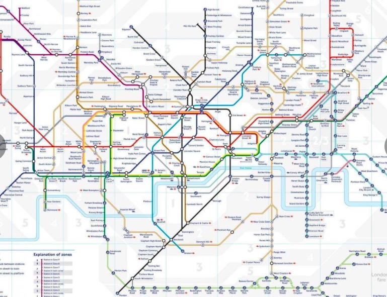 伦敦市区(6区之内)严格来说一共涵盖了11条地铁线路,每条线都有自己的颜色,就连地铁车厢里的各种把手也涂上了每条线独有的颜色,比如说Victoria Line是天蓝色的,它车厢里的主色调也是蓝的。