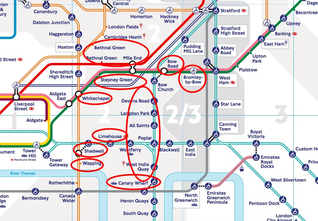 交通方面,目前已经有的地铁,火车DLR车站如下: