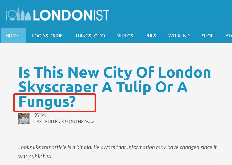 《LONDONIST》发表文章称,新的摩天大厦犹如一朵大蘑菇。