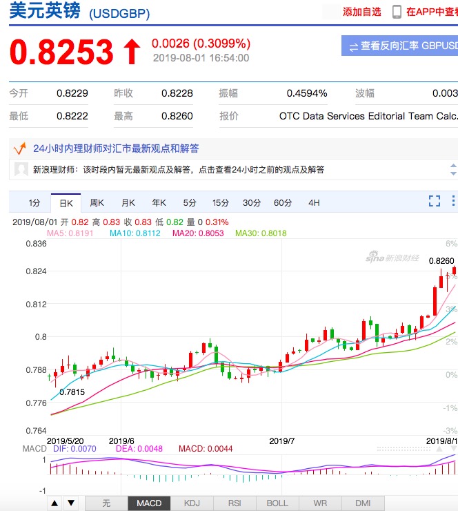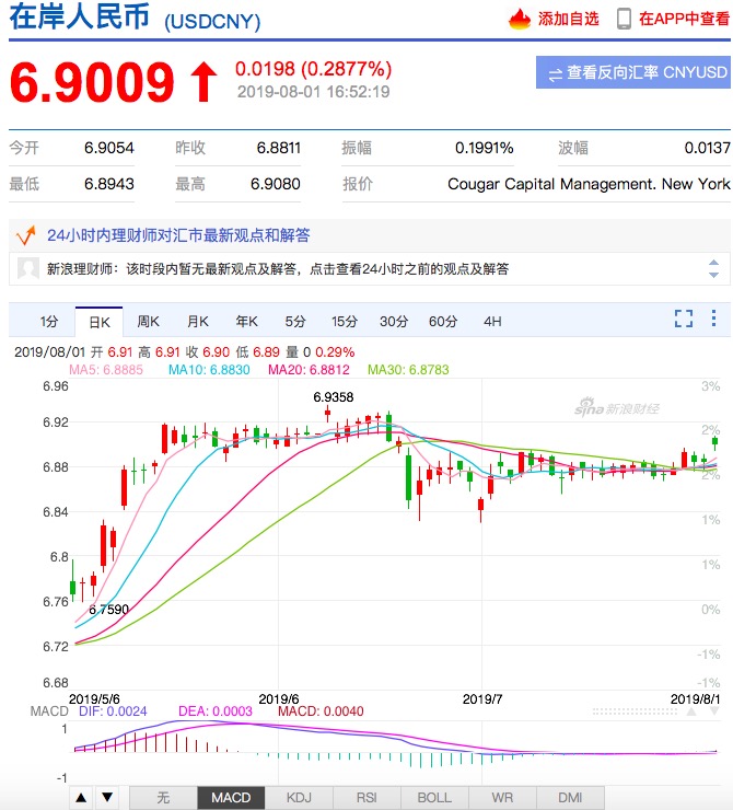美联储利息的变动对全世界都有着重大的影响,截止8月1日,美元对人民币略有上升。