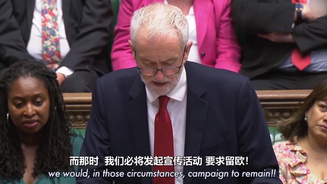 科尔宾在发言即将结束时宣称道,如果鲍里斯仍要执意无协议脱欧的话,工党将转而支持“留欧”,这句话一出,举座哗然,这主要是由于工党在脱欧立场上向来“暧昧不明”。