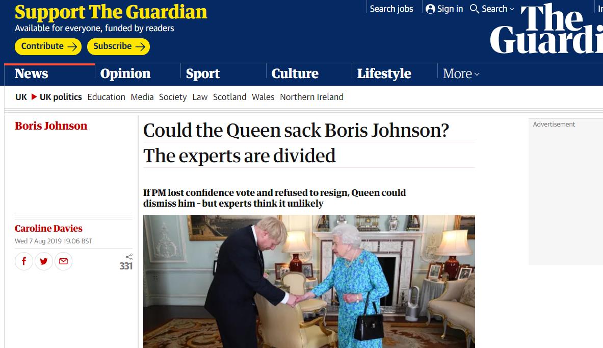 尽管在这期间,他可能会被指控,但这的确并不违法,因此女王无权干预。而且,按照女王以往的行事作风,她并不愿意过多地干涉议会,所以留欧派议员寄托于女王干政的希望可能会落空。
