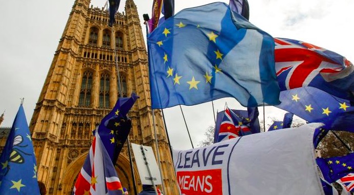 由于北爱尔兰民主统一党和保守党内部部分议员的持续反对,时任英国首相特蕾莎梅不得不放弃了原本计划的针对她脱欧协议的第三轮投票。