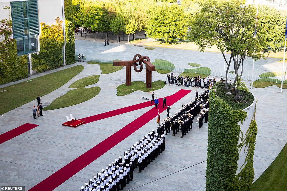 鲍里斯将此次谈判之旅的第一站定在了德国。当地时间8月21日,鲍里斯抵达柏林,并在柏林总理府外与德国总理默克尔一同检阅了仪仗队。