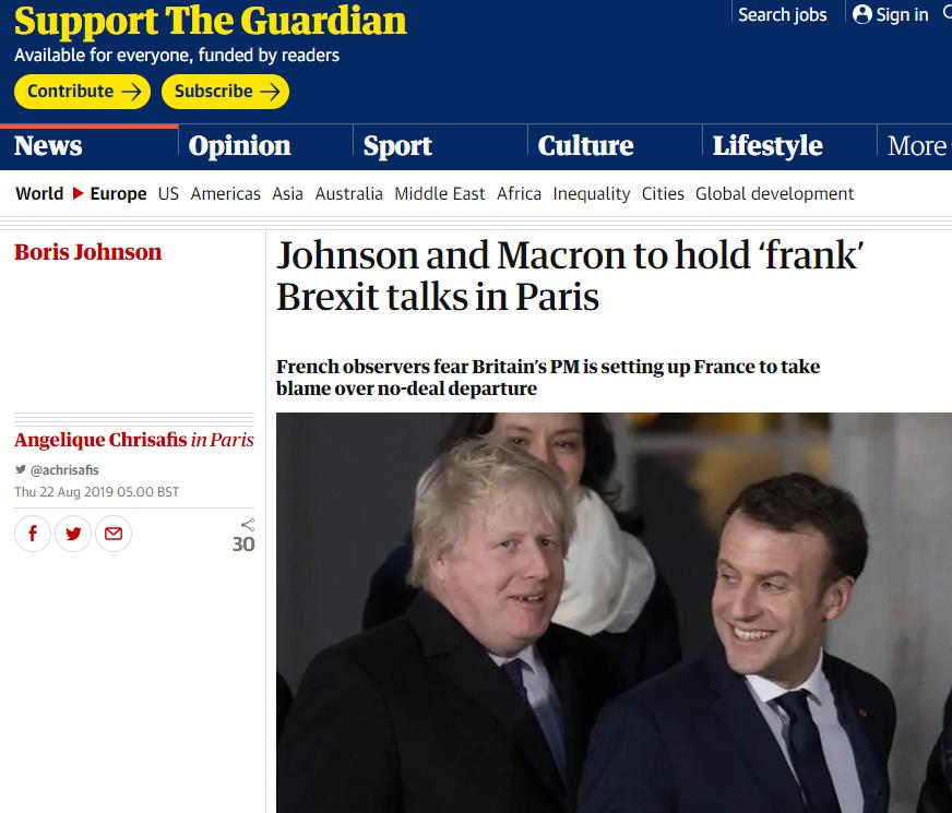 在8月22日,鲍里斯马不停蹄的前往法国巴黎,与法国总统马克龙共享午餐,这是鲍里斯继德国之行后,与欧盟正式开启脱欧谈判的第二站。