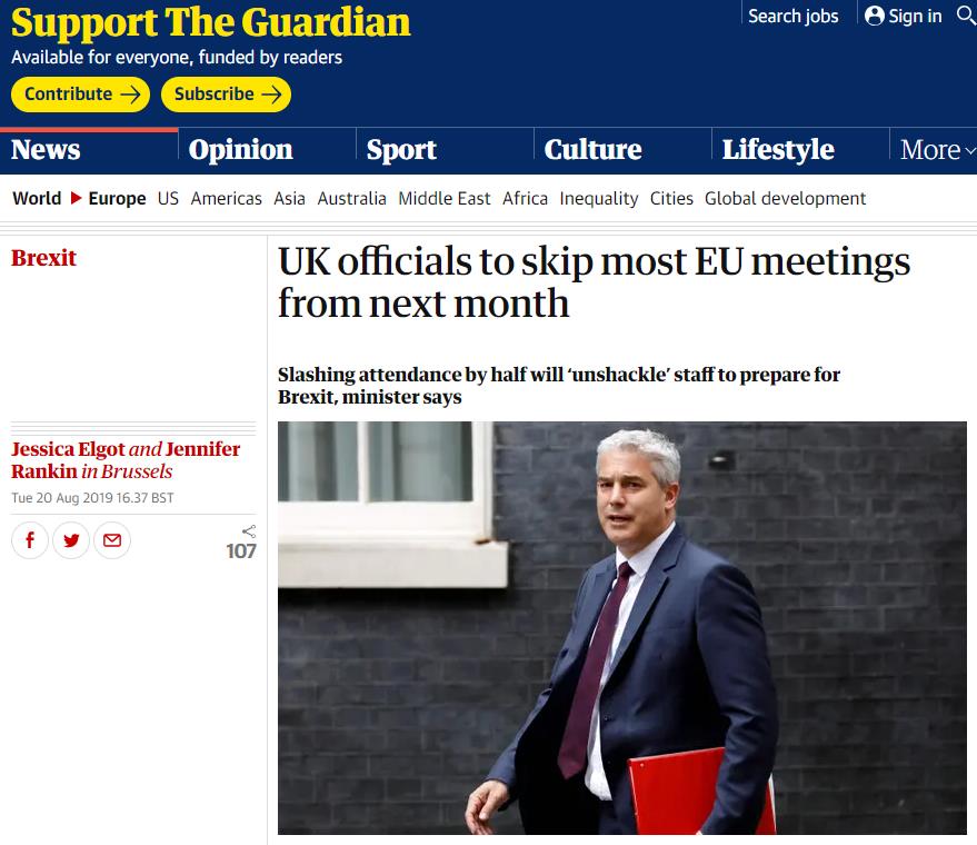 据报道,英国官员将从下月起缺席大部分的欧盟会议。英国外交大臣表示,将出席会议人数削减一半将有助于“解放”在欧盟的英国官员,让他们可以全身心地投入到英国脱欧的准备工作中去。