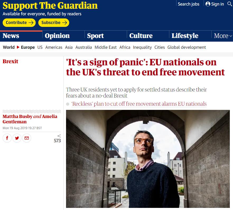众多在英国的欧盟公民对英国终止自由流动的威胁表示担忧,称“这是恐慌的迹象”。有人向记者发问:“如果行动自由于10月31日结束,我们将何去何从?”