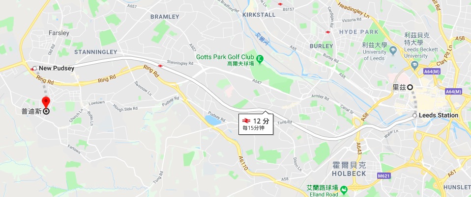 Pudsey交通便利,从这里乘坐火车抵达利兹只需12分钟,而利兹是西约克郡最大的工业城市,是英国北部的金融和法律中心。